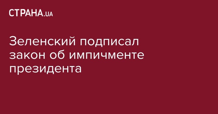 Зеленский подписал закон об импичменте президента