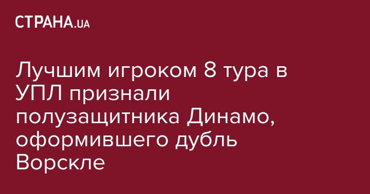 Лучшим игроком 8 тура в УПЛ признали полузащитника Динамо, оформившего дубль Ворскле