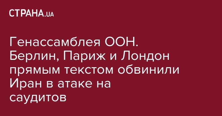 Генассамблея ООН. Берлин, Париж и Лондон прямым текстом обвинили Иран в атаке на саудитов