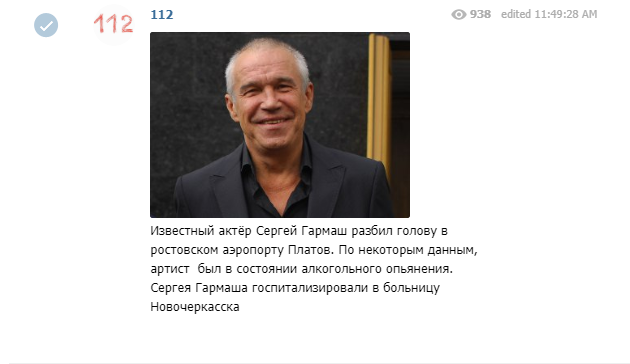 Актер Сергей Гармаш травмировался в аэропорту Ростова-на-Дону и попал в больницу
