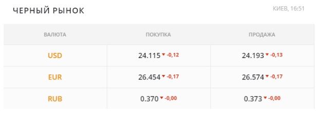 И отметил, что сейчас курсовые ориентиры устанавливает наличный рынок, который снижается быстрее, чем межбанк. К вечеру вторника менялы на черном рынке опустили курс продажи до 24,14-24,15 грн./$. А выкупали доллары по 24,10-24,13 грн./$.
