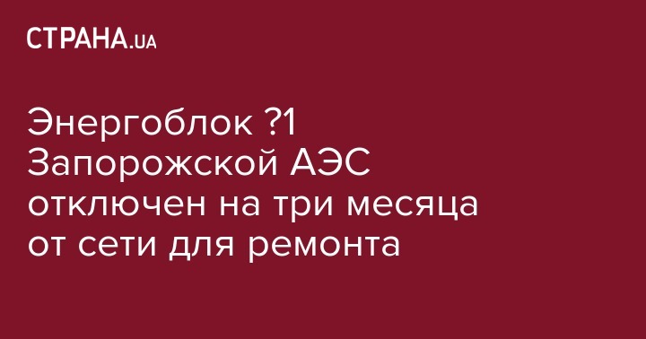 25 сентября в 17:00 Запорожская атомная электростанция отключила от энергосистемы страны энергоблок №1 для проведения капитального планово-предупредительного ремонта. Об этом сообщает пресс-служба НАЭК "Энергоатом".