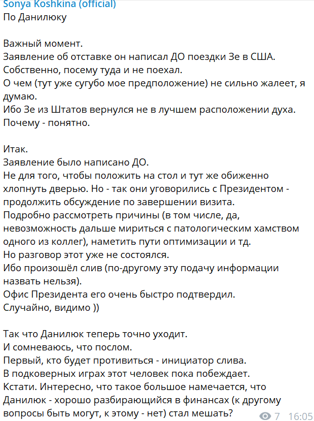 По Данилюку важный момент. Заявление об отставке он написал ДО поездки Зе в США.