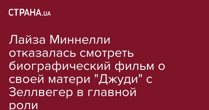 Актриса и певица Лайза Миннелли заявила, что не собирается смотреть фильм о своей матери, звезде Голливуда Джуди Гарленд, роль которой исполняет Рене Зеллвегер. Об этом сообщает TMZ.