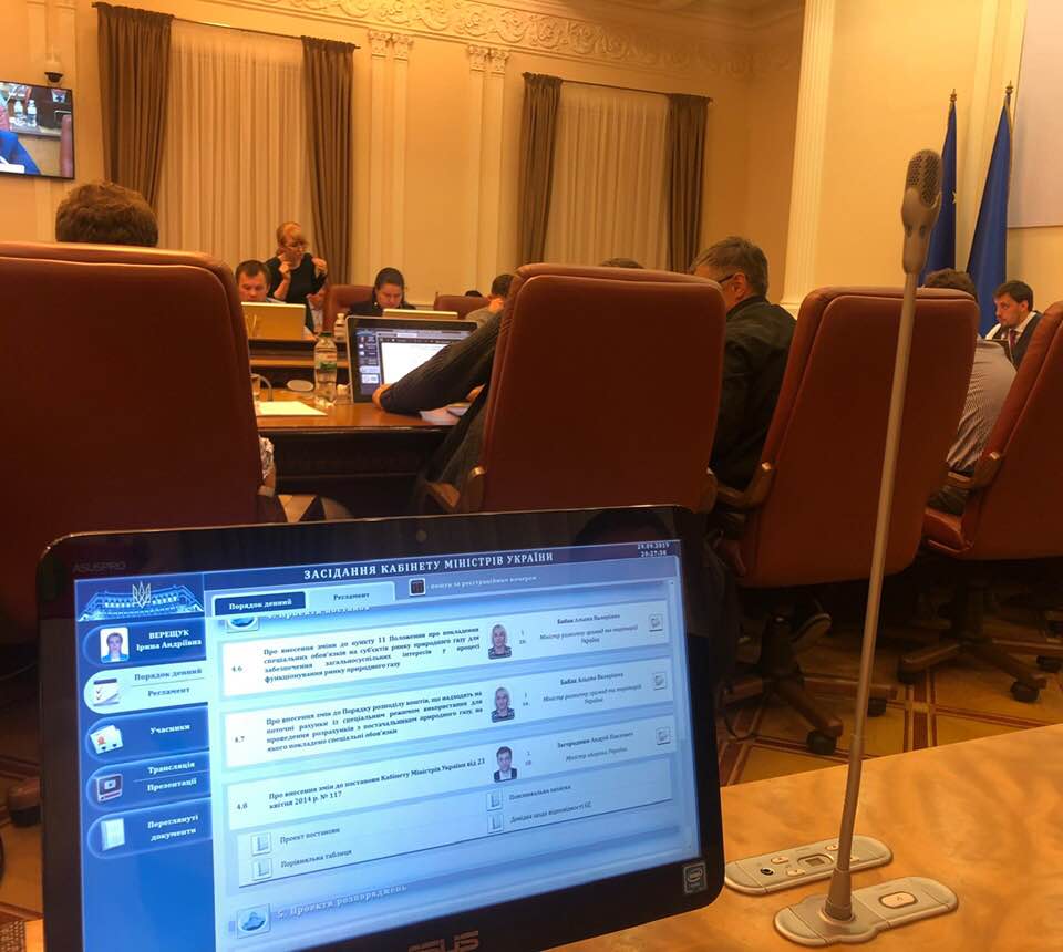 Свою запись она проиллюстрировала фотографией с Кабмина, где видно монитор компьютера, на котором открыто заседание Кабинета министров Украины.