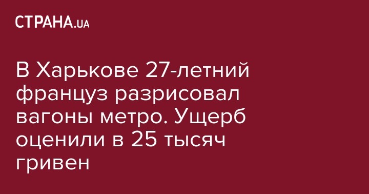 В понедельник, 30 сентября, в Харькове полицейские задержали гражданина Франции, который разрисовал вагоны метро. Об этом сообщает Отдел коммуникации ГУ НП в Харьковской области