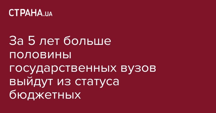 За 5 лет не менее 70% государственных высших учебных заведений в Украине выйдут из статуса бюджетных учреждений. То есть их сделают платными и снимут с финансирования государства. По задумке правительства, высшие учебные заведения должны получить финансовую автономию. Об этом говорится в программе Кабмина, обнародованной 30 сентября.