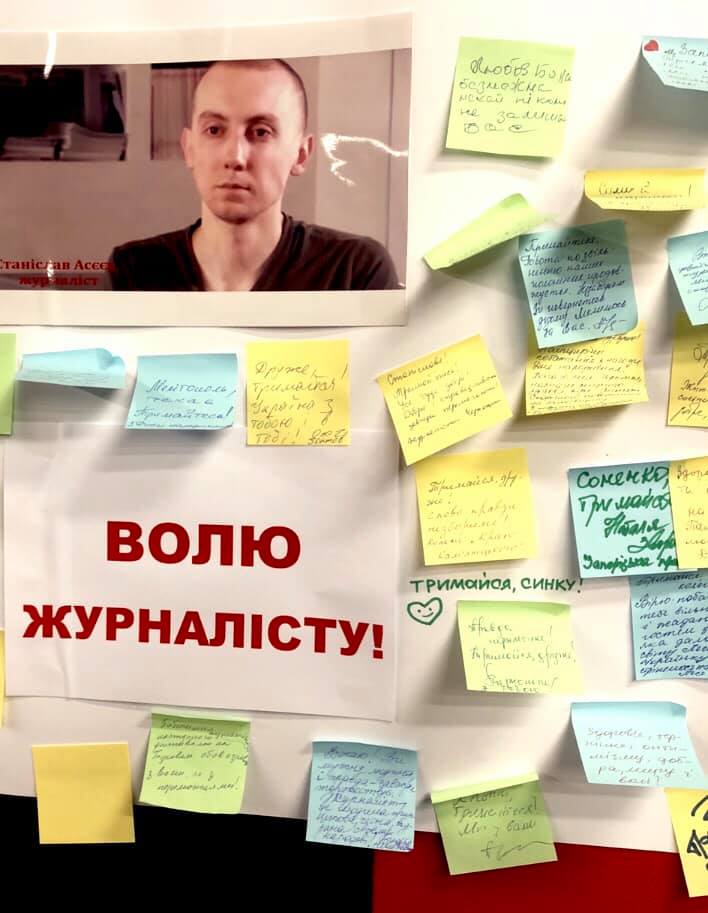 Украинские журналисты провели всеукраинскую акцию в поддержку коллеги Станислава Асеева, который уже два с половиной года находится в плену "ДНР". 1 октября ему исполняется 30 лет. Акция прошла по инициативе НСЖУ, о ней сообщил его глава Сергей Томиленко.