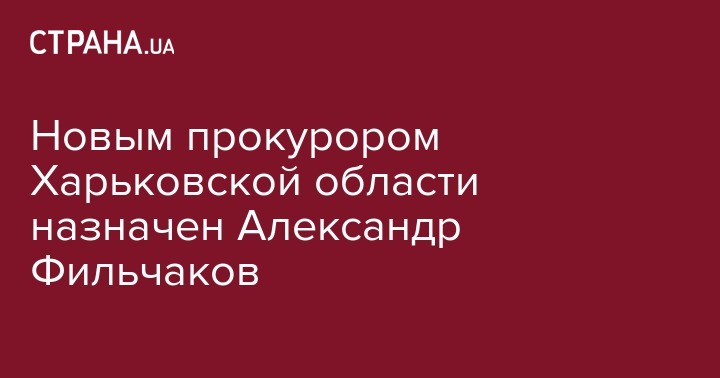 "Генеральный прокурор Руслан Рябошапка подписал приказ о назначении Александра Фильчакова на должность прокурора Харьковской области", - говорится в сообщении.