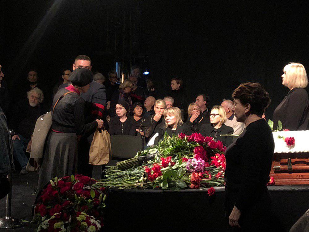 На этом прощание с Захаровым завершилось, люди покидают театр. Часть присутствующих осталась в фойе, чтобы проводить режиссера аплодисментами.