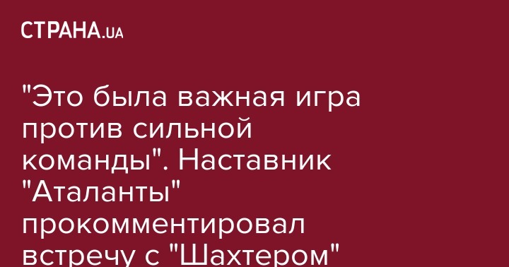 "Это была важная игра против сильной команды". Наставник "Аталанты" прокомментировал встречу с "Шахтером"
