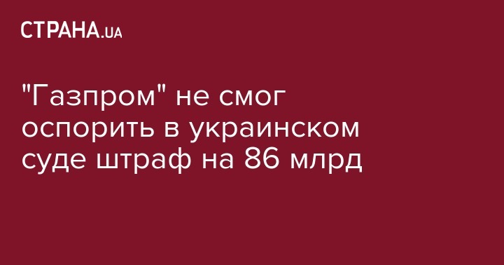 Как сообщала "Страна", "Газпром" оспорит в суде предъявленный Украиной штраф на 86 млрд гривен. Соответствующий иск представители "Газпрома" зарегистрировали 12 апреля в Хозяйственном суде Киева. Ответчиками в судебном деле определены крупнейший в Украине государственный энергетический холдинг «Нафтогаз Украины» и подконтрольная ему компания "Укртрансгаз".