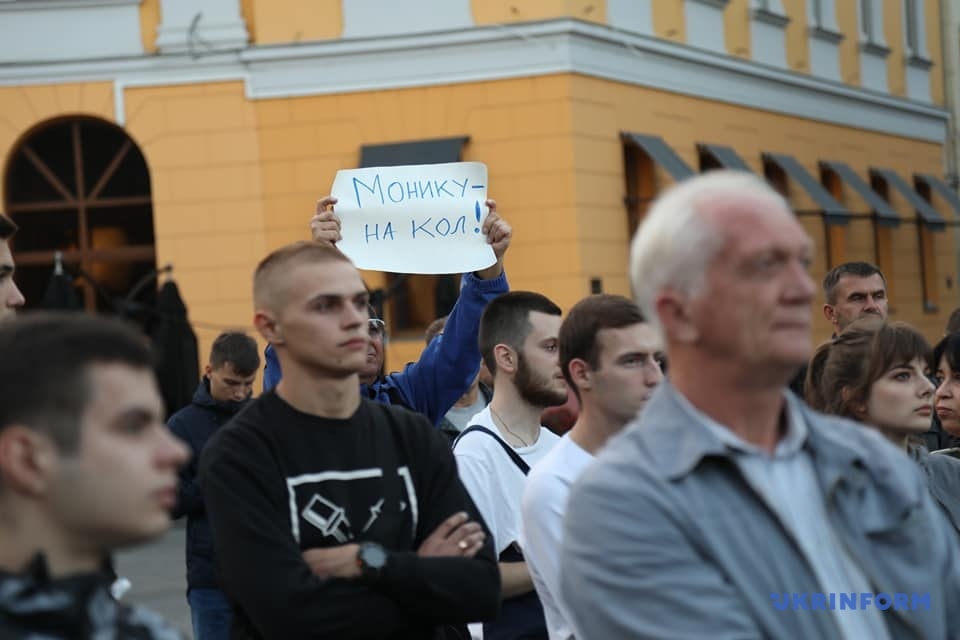 На акции требовали, среди прочего, привлечь к уголовной ответственности и лишить гражданства всех, кто "предал Украину, работал на оккупационную администрацию, участвовал в военных операциях против бойцов ВСУ".