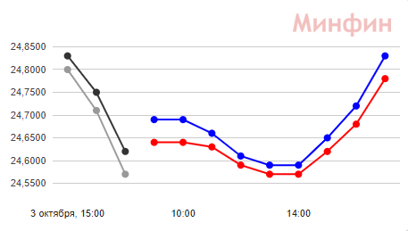 В то же время финансисты отмечают, что импортеры в ближайшее время будут в ажиотаже скупать валюту. Банкиры ожидают, что курс доллара на межбанке 4 октября будет в диапазоне 24,50-24,70 грн/$.