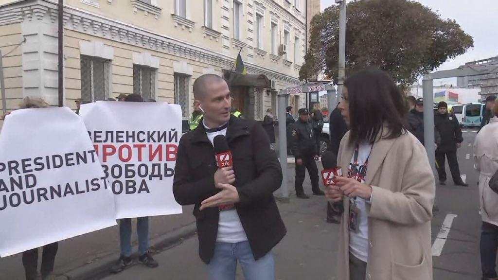 В Житомире в пятницу, 4 октября, проходит акция в поддержку телеканалов "112 Украина", NewsOne и Zik. Ее участники требуют от президента Владимира Зеленского, который в этот день находится в городе, прекратить давление на СМИ.