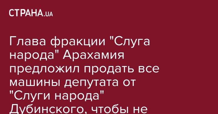 Глава фракции "Слуга народа" Арахамия предложил продать все машины депутата от "Слуги народа" Дубинского, чтобы не брать кредиты МВФ