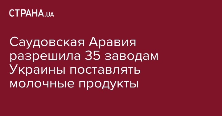 Саудовская Аравия разрешила 35 заводам Украины поставлять молочные продукты