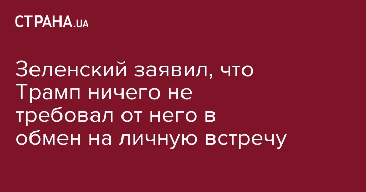 Зеленский заявил, что Трамп ничего не требовал от него в обмен на личную встречу