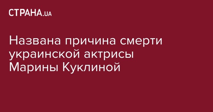 Стала известна причина смерти украинской актрисы Марины Куклиной.