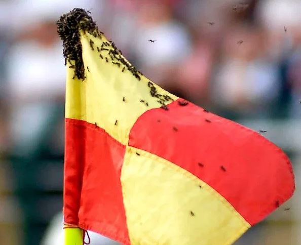Насекомые укусили Алвеса, после чего матч был прерван. В результате один из футболистов, прикрыв майкой лицо, вытащил флажок и выбросил его за пределы поля.