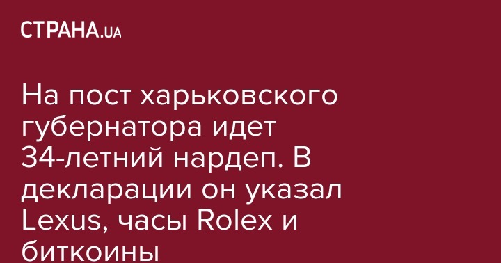 На пост харьковского губернатора идет 34-летний нардеп. В декларации он указал Lexus, часы Rolex и биткоины