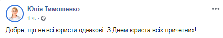 "Хорошо, что не все юристы одинаковы. С Днем юриста всех причастных!" - говорится в подписи к фото.