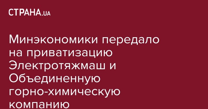 Министерство экономики предало в Фонд госимущества на приватизацию "Электротяжмаш" и "Объединенную горно-химическую компанию". Об этом в Facebook сообщил министр экономики Тимофей Милованов.
