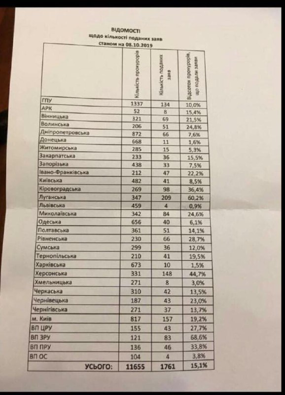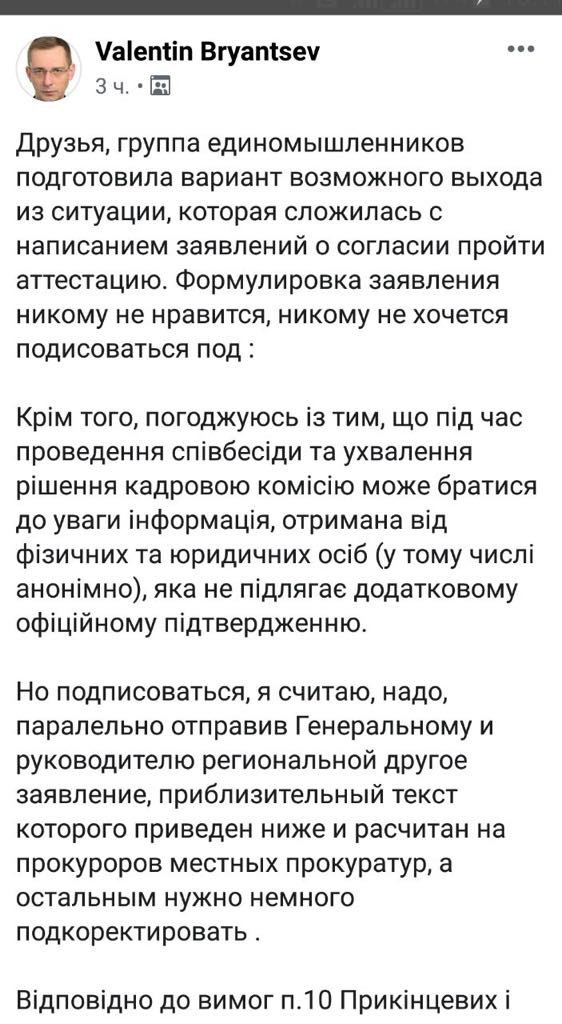 По инсайдерским данным, опубликованным в прокурорской группе в Facebook, сейчас заявления написали лишь 15% тех, кто подлежит переаттестации.