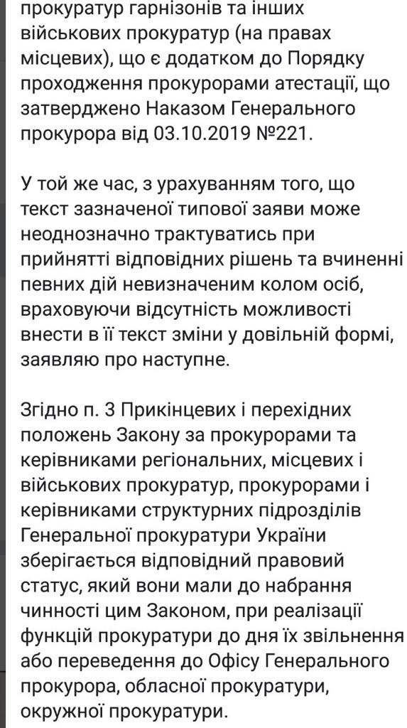 Многие сотрудники силового ведомства не согласны с типичной формулировкой, которую придумали у генпрокурора Руслана Рябошапки и в принудительном порядке заставляют подписать всех прокуроров до 15 октября. Кто не напишет - того ждет увольнение.