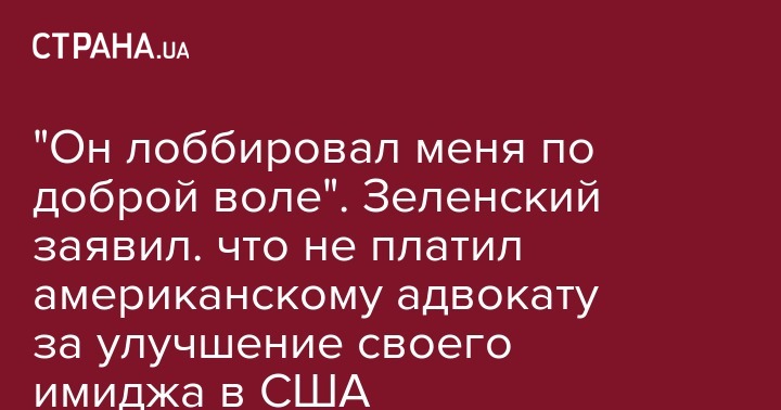 "Он лоббировал меня по доброй воле". Зеленский заявил. что не платил американскому адвокату за улучшение своего имиджа в США