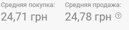 В обменках по состоянию на 08:00 средняя покупка была 24,68 грн, средняя продажа - 24,77 грн.