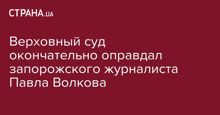 Верховный суд вернул прокурору кассационную жалобу на оправдательный приговор запорожского журналиста Павла Волкова, которого судили с подачи СБУ за "пособничество террористам" и "госизмену". Об этом сообщил в Facebook журналист Василий Муравицкий, который также ранее был арестован по подозрению в госизмене, а потом выпущен под домашний арест.