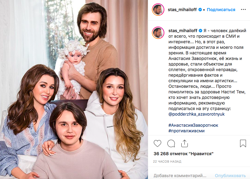 Учитывая огромный объем информации относительно актрисы, на ее защиту стал популярный российский поп-певец Стас Михайлов. Он опубликован в Инстаграме фото семьи и артистки и призвал не верить верить сплетням, которые распространяются вокруг "няни".