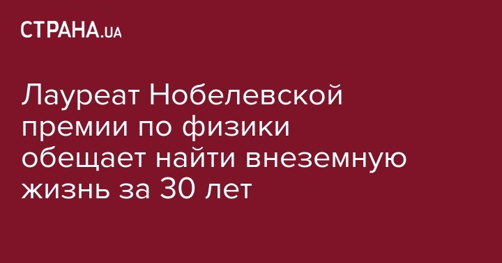 По мнению эксперта космологии, который во вторник получил Нобелевскую премию по физике, внеземная жизнь существует. При этом ученый уверяет, что сможет ее найти в течение следующих 30 лет, пишет Newsweek.