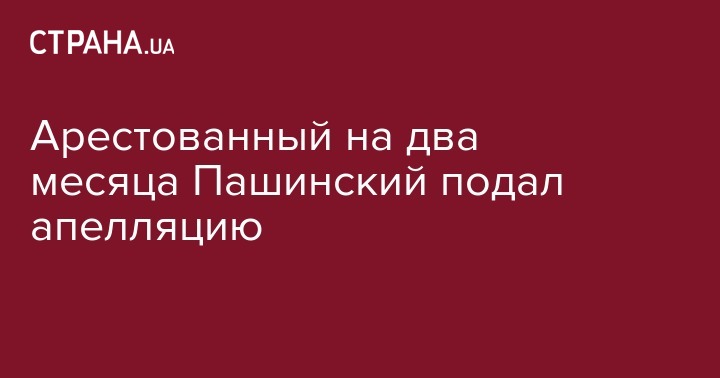 Адвокаты экс-нардеп подали апелляционную жалобу на решение суда об аресте Пашинского на два месяца без права внесения залога.