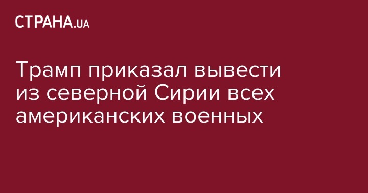 Президент США Дональд Трамп распорядился отвести всех американских военных с севера Сирии, где проходит совместная операция турецких вооруженных сил и сирийской оппозиции против курдов. Об этом сообщает "Интерфакс" со ссылкой на шефа Пентагона Марка Эспера.