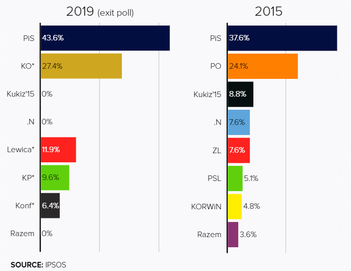 В сравнении с минувшими выборами ПиС даже упрочила свои позиции, что позволит им снова сформировать монокоалицию в Сейме.