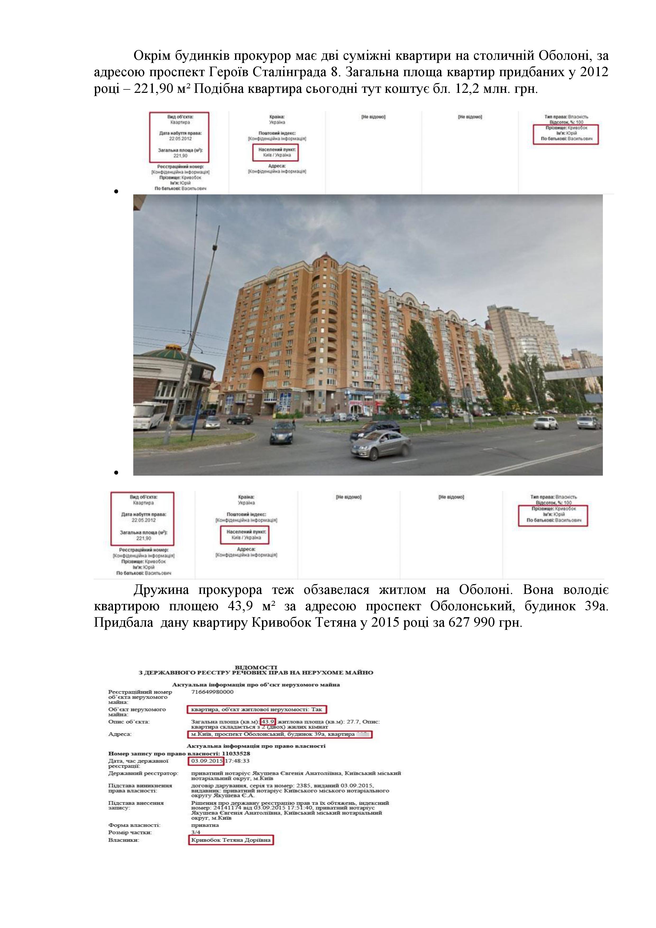 Напомним, Генпрокуратура Украины вызвала бывшего министра юстиции Елену Лукаш, чтобы вручить ей уточненное пследователь Кривобок. Между тем, жена Юрия Кривобока в 2015 году получила 154 млн грн дохода от продажи недвижимого имущества.