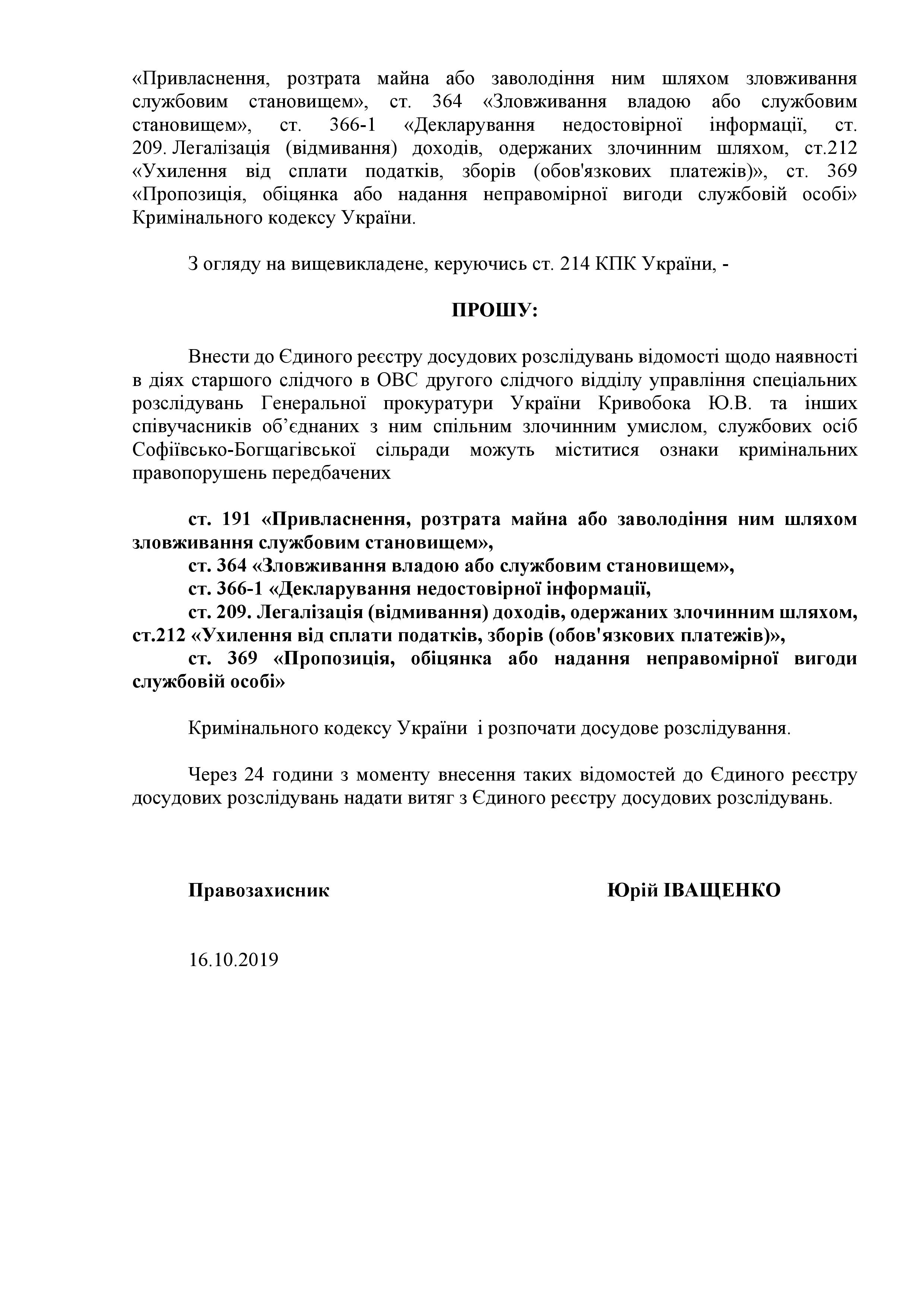 По его словам, сейчас готовятся еще несколько заявлений в отношении следователя Кривобока уже в части его служебной деятельности.