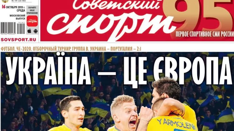 В среду, 16 октября, одно из ведущих спортивных изданий России - газета "Советский спорт" вышла с заголовком на украинском языке. Название статьи "Україна - це Європа" размещено на первой странице этого профильного ежедневника.