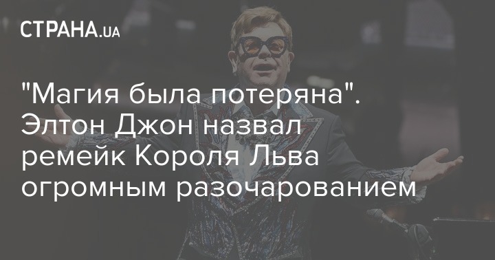 Британский музыкант Элтон Джон заявил, что был очень разочарован ремейком знаменитого мультфильма Disney "Король Лев", ставшим самым кассовым анимационным фильмом. Об этом он сообщил в интервью изданию GQ.