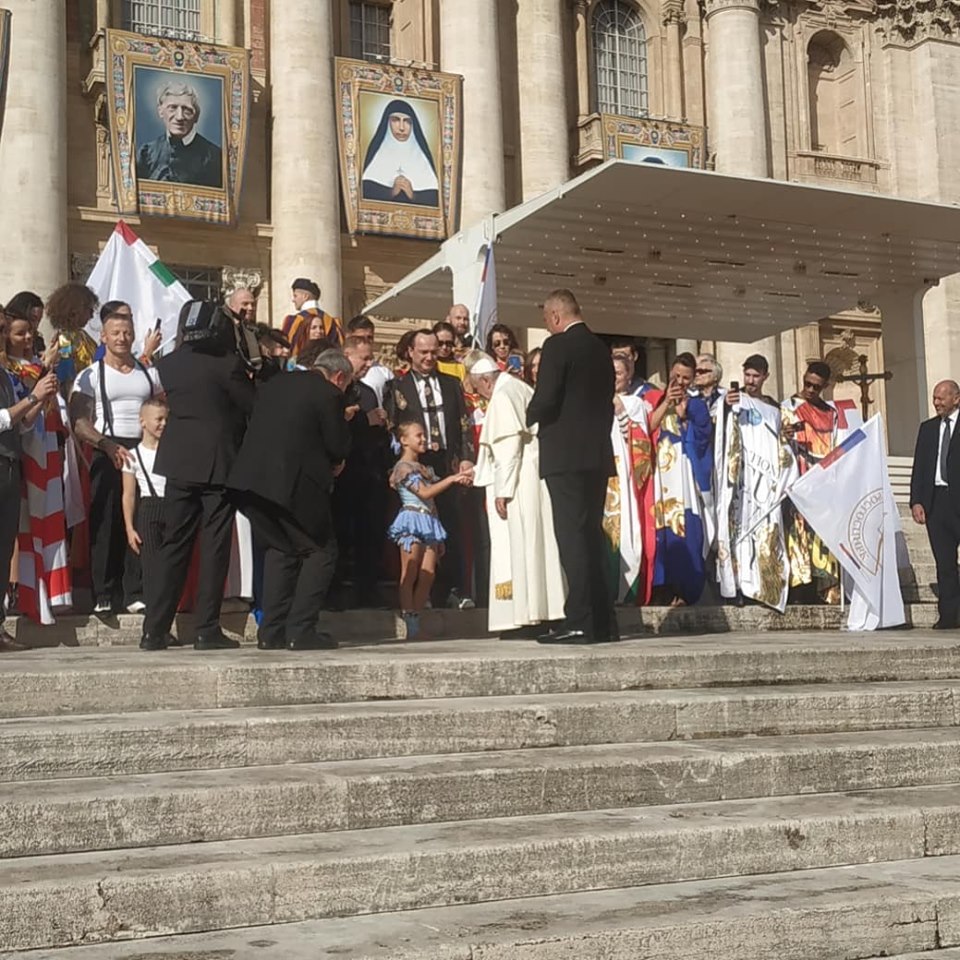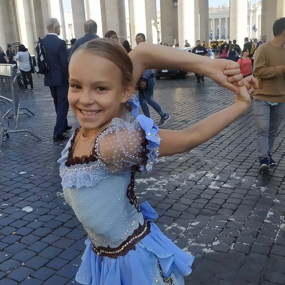 Юная гимнастка из Украины выступила перед Папой Римским и получила от него благословение и крестик. Фото