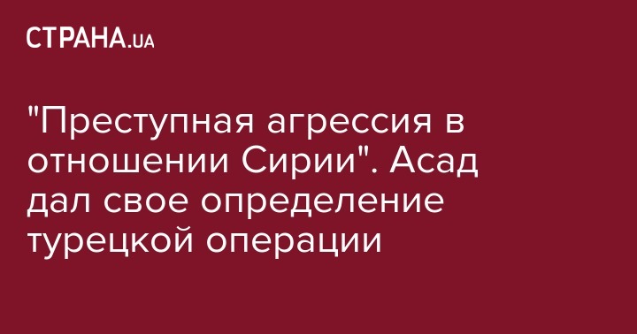 "Преступная агрессия в отношении Сирии". Асад дал свое определение турецкой операции