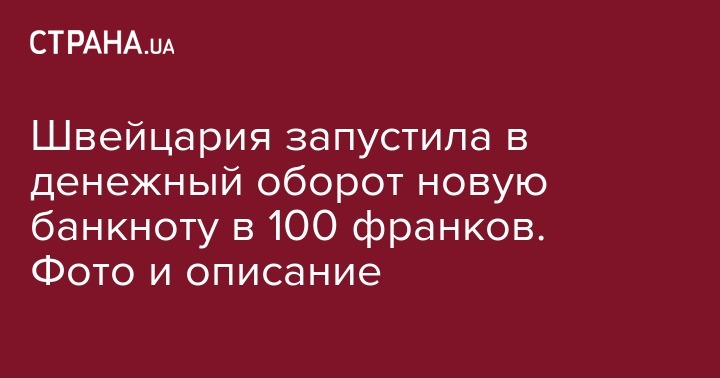 Швейцария запустила в денежный оборот новую банкноту в 100 франков. Фото и описание