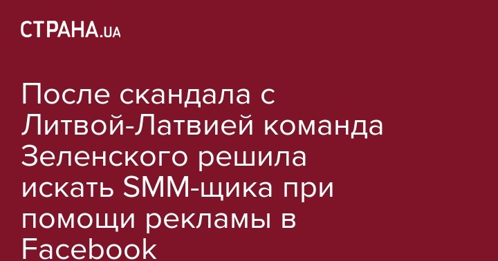 После скандала с Литвой-Латвией команда Зеленского решила искать SMM-щика при помощи рекламы в Facebook