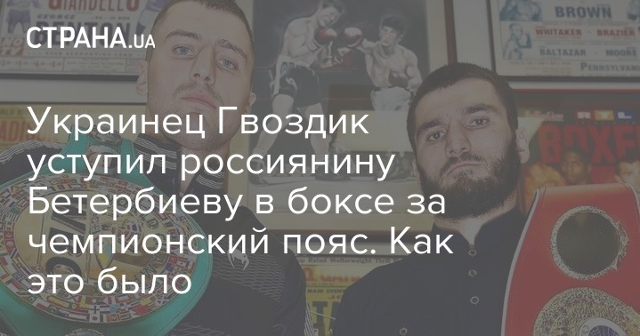 В субботу, 19 октября в США Александр Гвоздик уступил Артуру Бетербиеву в объединительной боксерской встрече. Поединок завершился трема нокдаунами, что означает технический нокаут. Бетербиев стал обладателем пояса чемпиона мира в полутяжелом весе по версии WBC и сохранил свой чемпионской пояс IBF.