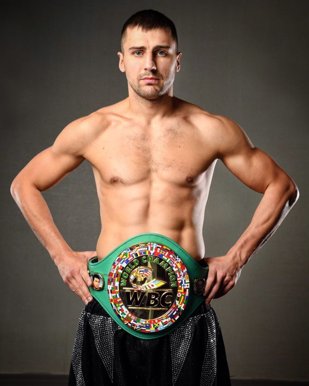 Накануне боксеры провели дуэль взглядов и сфотографировались со своими чемпионскими поясами.