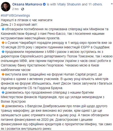 Как пишет Маркарова в Facebook этот транш Украина может получить еще до конца года.
