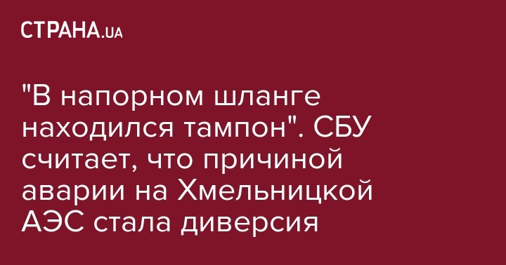 Служба безопасности Украины начала расследовать как диверсию повреждение турбогенератора Хмельницкой атомной электростанции (Нетешин, Хмельницкая область). Об этом говорится в материалах суда, передают Украинские новости.