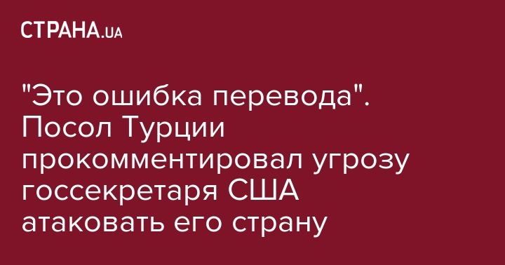 "Это ошибка перевода". Посол Турции прокомментировал угрозу госсекретаря США атаковать его страну